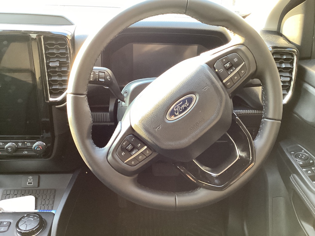 Air Conditioner, Alarm Immobiliser, Auto lights, Bluetooth, Carpet Set, Cartrack, Central Locking, Electric Windows, Leather Seats, Metallic Paint, Power Steering, Radio CD, Remainder of Service Plan, Remainder of Warranty, Reverse camera, Satellite Navigation, Service History, Side Steps, Tow Bar, Window tint. The 2025 Ford Ranger 2.0 SiT Double Cab XLT 4x4 offers a capable driving experience with its 125kW 2.0L single-turbo diesel engine, 6-speed automatic transmission, and advanced electronic 4x4 system. Its chassis and suspension provide a ride quality described as agreeable for daily use, approaching that of an SUV. The vehicle features driver-assistance technologies like lane-keeping assist, a rearview camera, and selectable drive modes for various terrains, contributing to overall confidence and versatility